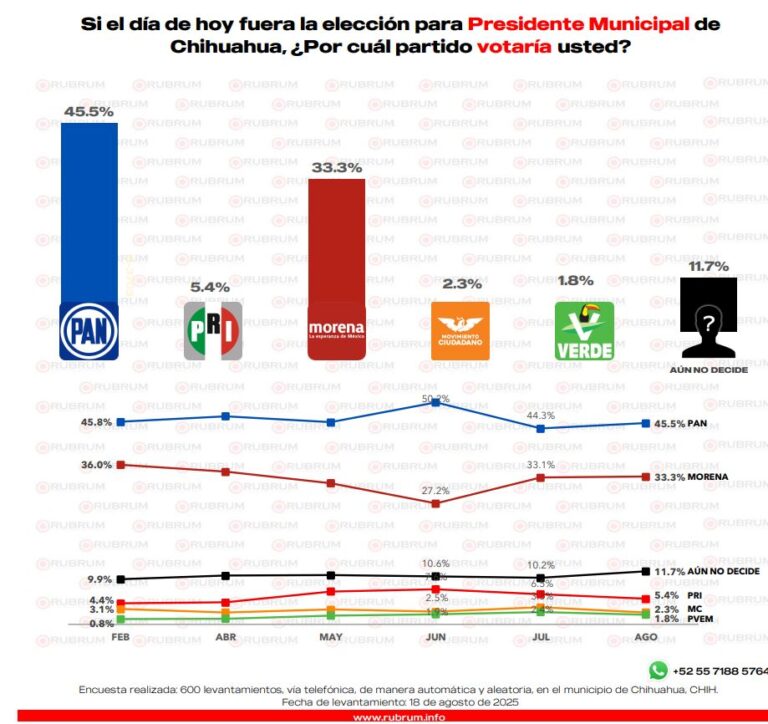 Encabeza Morena la encuesta del mes de agosto por la alcaldía de Juárez rumbo al 2027 20 agosto, 2025