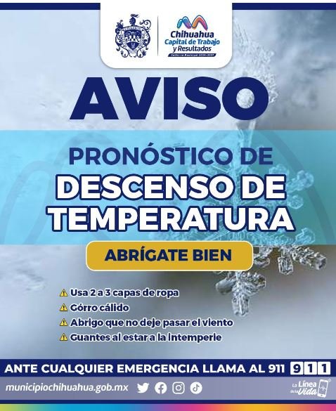 Emite Gobierno Municipal alerta preventiva por descenso de temperaturas en Chihuahua Capital 27 diciembre, 2025