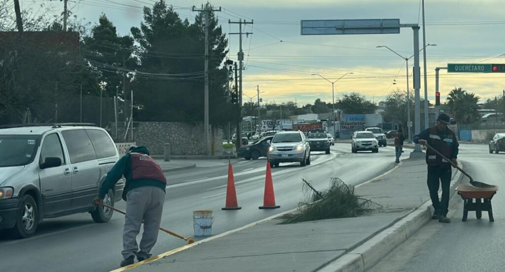 El titular de la Dirección de Limpia, Gibran Solís Kanahan, señaló que varias cuadrillas realizan distintos trabajos en la vialidad, en beneficio de los juarenses.