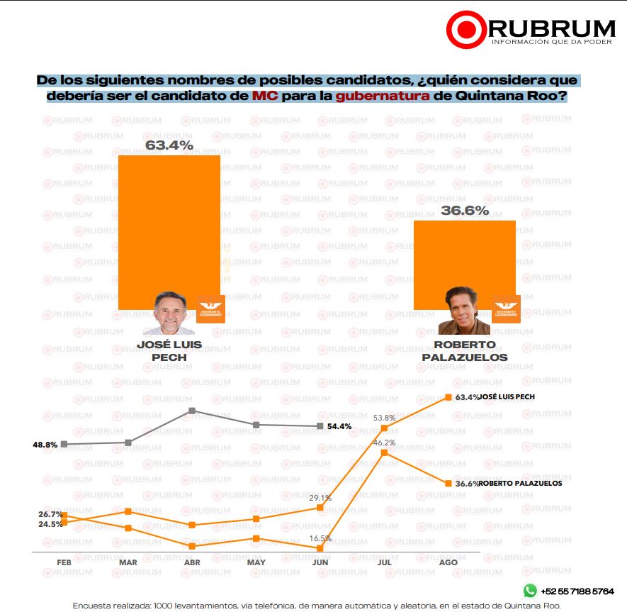 José Luis Pech con el 63.4 por ciento seguido por Roberto Palazuelos con el 36.6%