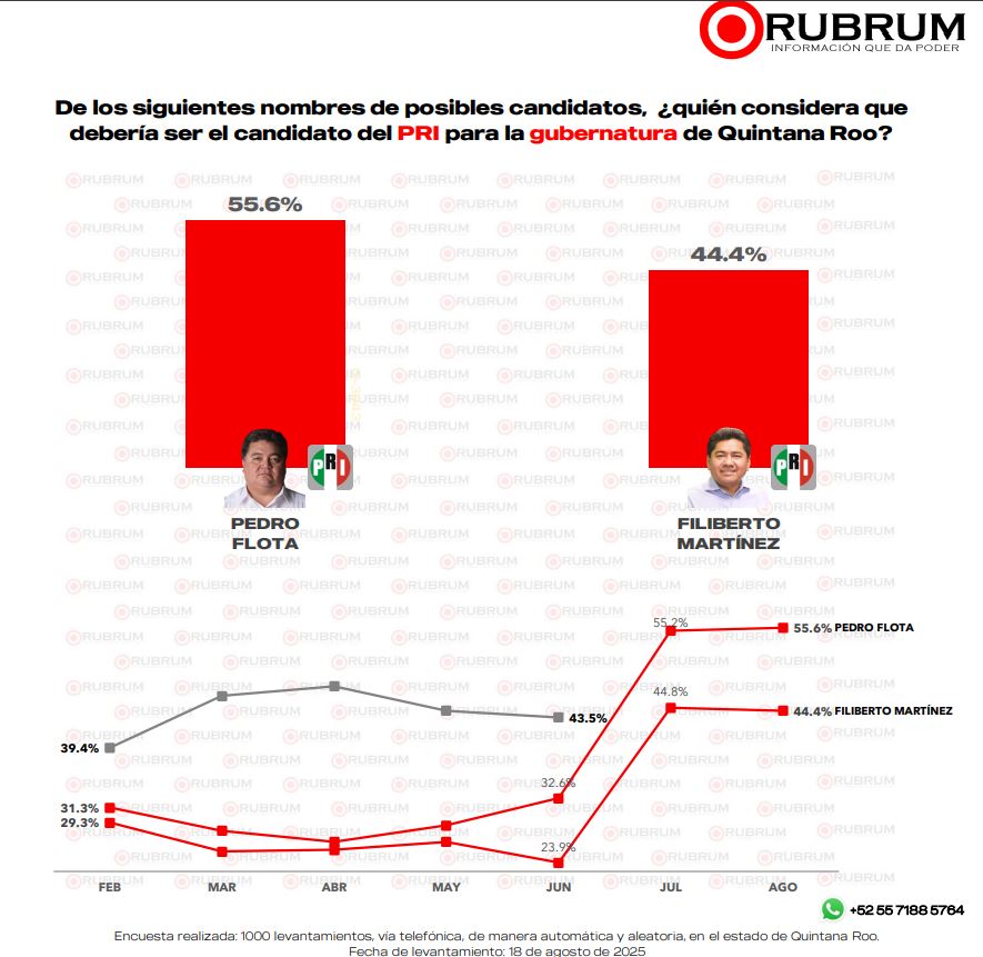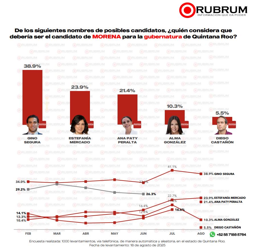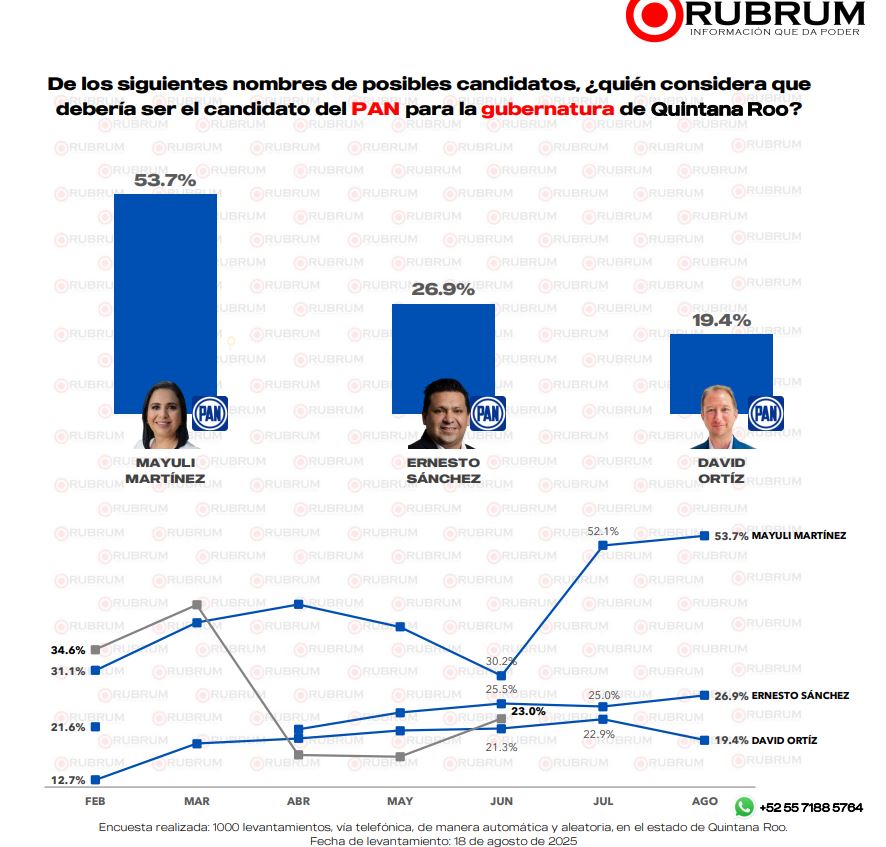 La encuestadora RUBRUM presentó su censo del mes de agosto sobre las preferencias electorales en Quintana Roo con miras a las elecciones del 2027.