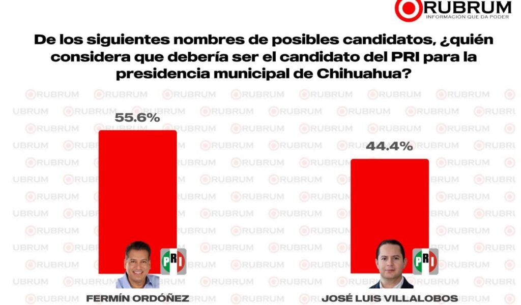 RUBRUM presentó su más reciente encuesta en donde le preguntó a los chihuahuenses, por quién votaría en las elecciones para el 2027, arrojando los siguientes resultados.