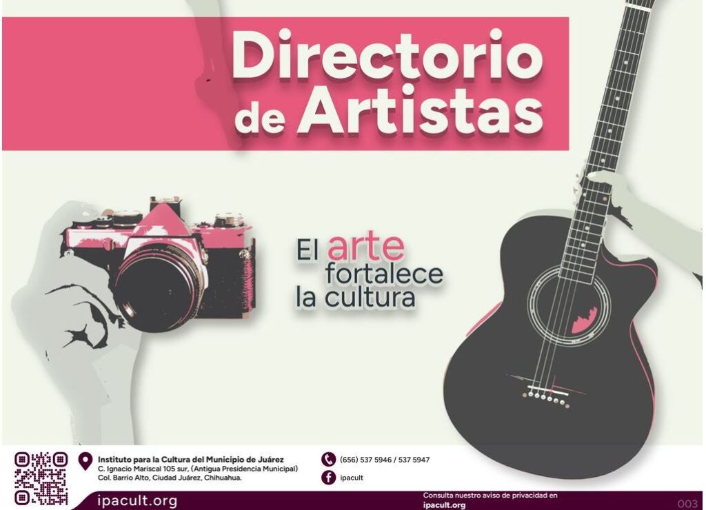 El Instituto para la Cultura del Municipio de Juárez (IPACULT) emitió una invitación dirigida a todas y todos los creadores juarenses interesados en formar parte del Directorio de Artistas, una plataforma que busca visibilizar, conectar y fortalecer la comunidad creativa de la ciudad.