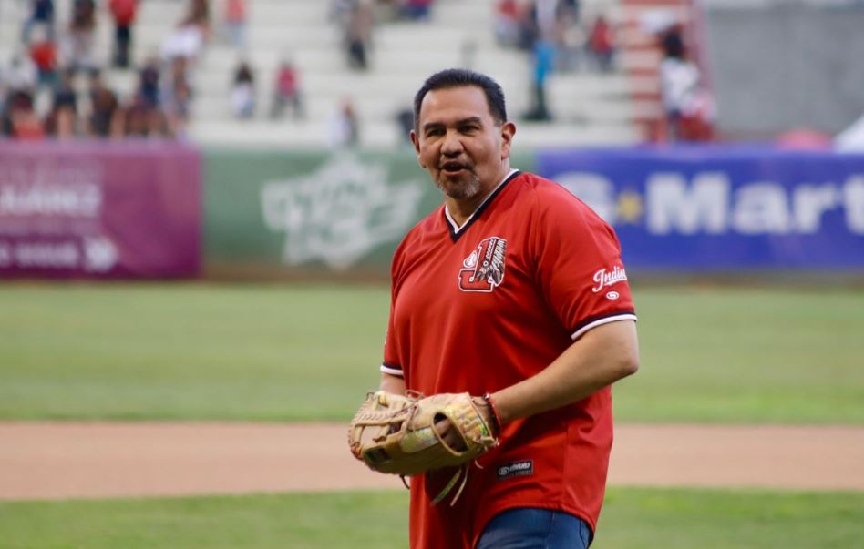 El Presidente Municipal, Cruz Pérez Cuéllar, acudió al tercer juego de la final del Campeonato Estatal de Beisbol, entre Indios de Juárez y los Dorados de Chihuahua, donde lanzó la primera bola del partido.