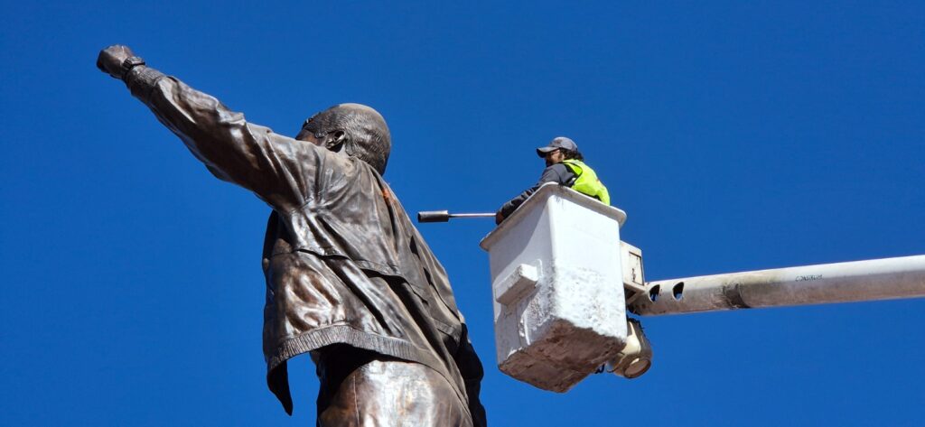 Con la intención de conservar siempre en buen estado los monumentos de Chihuahua Capital, el Gobierno Municipal a través de la Dirección de Mantenimiento Urbano, trabaja diariamente en la atención y limpieza de las estatuillas históricas de la ciudad.