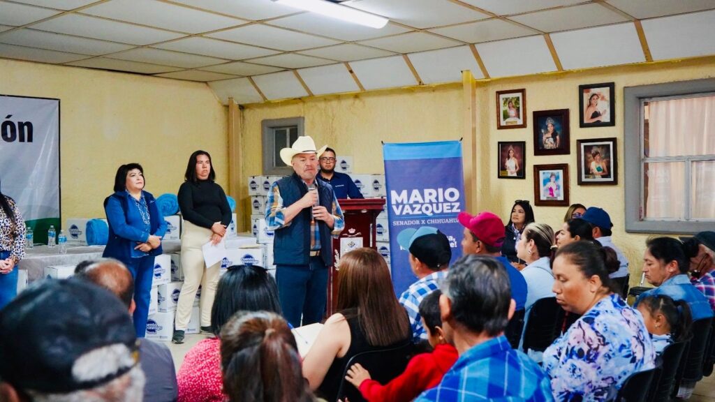Vázquez destacó que los apoyos fueron gestionados ante Gobierno del Estado, y fue posible su entrega gracias a la colaboración de la Gobernadora Maru Campos, quien los facilitó, consciente de las dificultades que atraviesan estas comunidades ante la sequía que se vive en Chihuahua.