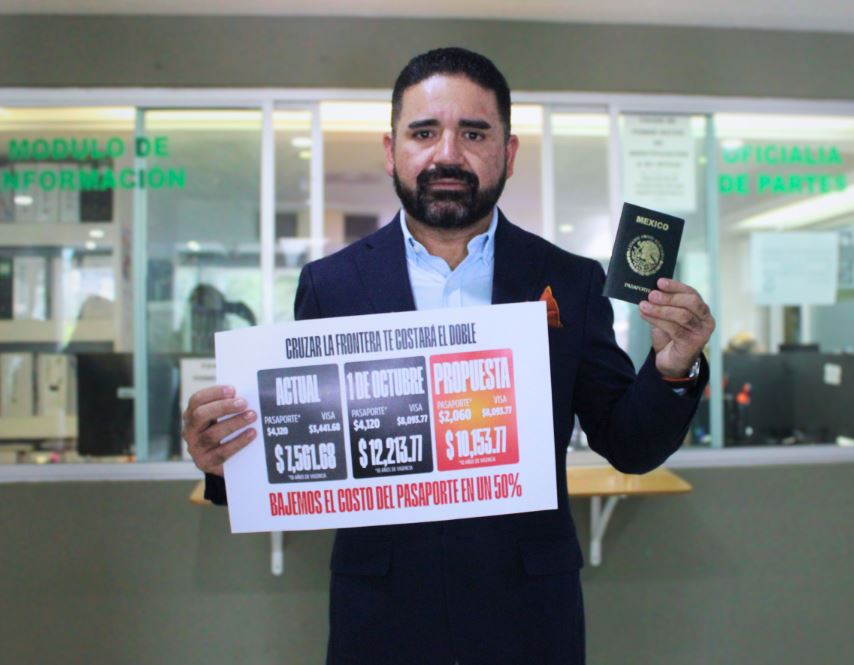 El diputado y coordinador de la Bancada Naranja de Movimiento Ciudadano, Francisco Sánchez Villegas, presentó la reforma para reducir el costo del pasaporte mexicano en un 50%. Esto como una manera de aligerar la carga económica ante el incremento en el precio de las visas para cruzar la frontera hacia los Estados Unidos.