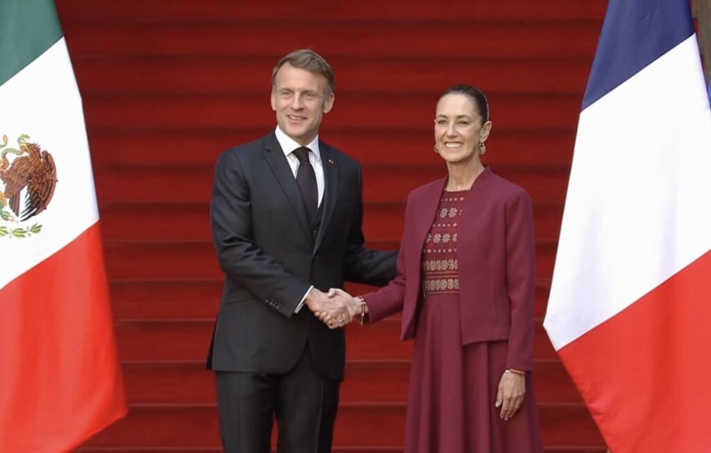 Recibe Sheinbaum a Macron en Palacio Nacional