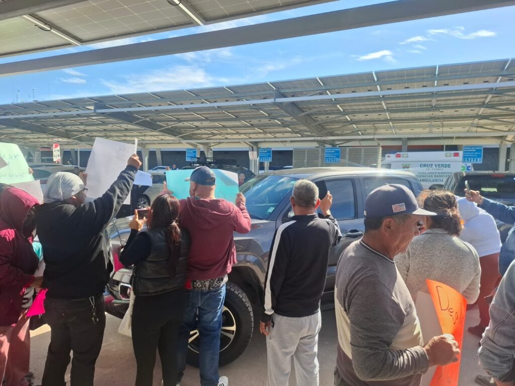Los inconformes portaban cartulinas con mensajes críticos y se concentraron en el área de llegadas del aeropuerto, donde se generó un ambiente de tensión momentánea.