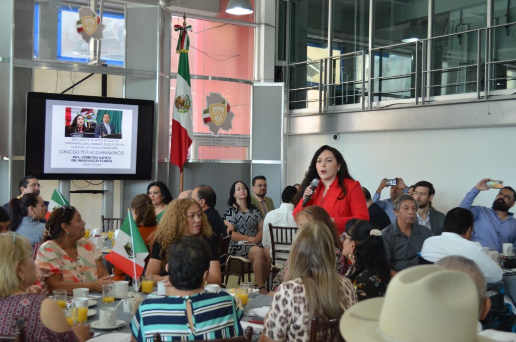 Los Diputados Georgina Zapata Lucero y Omar Bazán agradecieron a familiares, amigos, colaboradores, integrantes de la CTM y del PRI, el apoyo brindado durante esta legislatura, mediante un desayuno que se llevó a cabo en el Mezzanine del Congreso del Estado.